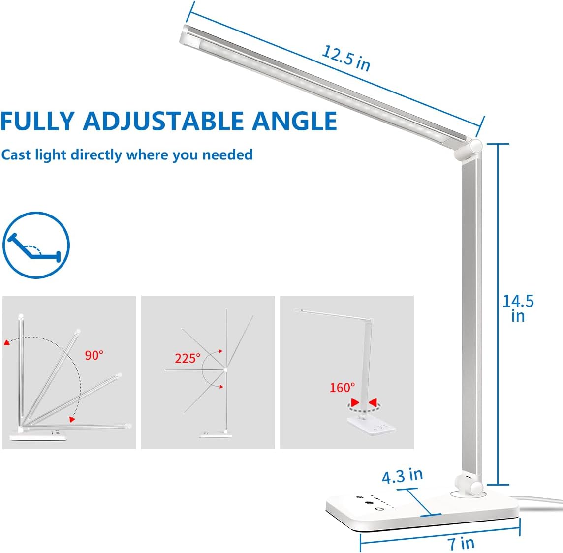 This desk lamp also includes a convenient USB charging port, so you can keep your devices powered up while you work or study. The 30/60 minutes auto-off timer ensures you never forget to turn off the light, saving energy and extending the lamp’s lifespan.